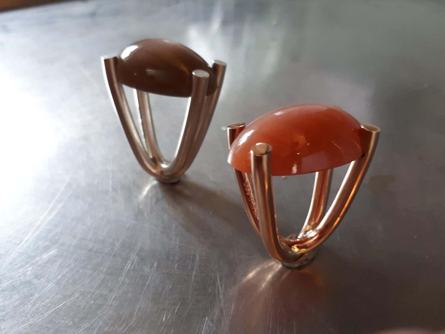 Jytte Kløve har et netværk af internationale stenslibere, som besøger Danmark en gang eller to om året, og fra disse forhandlere får hun ganske særlige og ofte ret store stene, som hun individuelt designer ringe til.